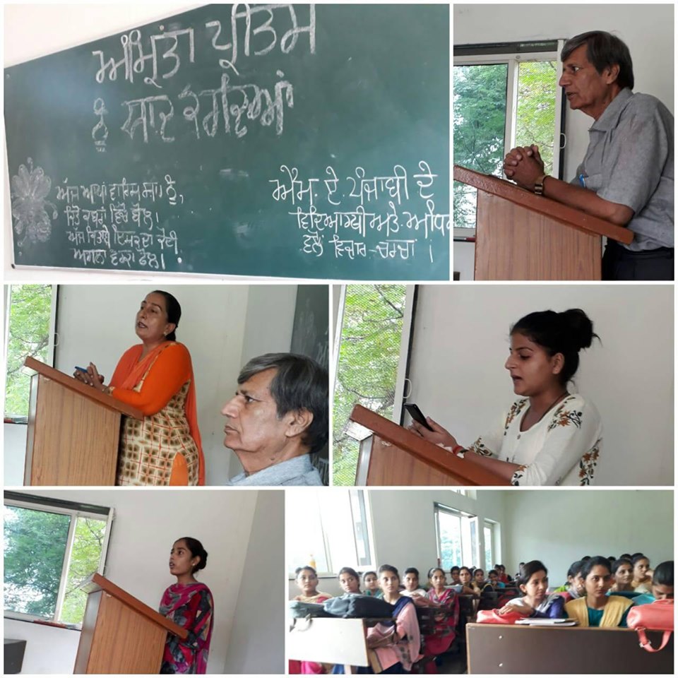 Uncategorized ਅੰਮ੍ਰਿਤਾ ਪ੍ਰੀਤਮ ਦੀ ਯਾਦ ਨੂੰ ਸਮਰਪਿਤ ਇੱਕ ਵਿਚਾਰ ਚਰਚਾ By SPN College Mukerian on 14 Sep 2019 • ( Leave a comment ) Share this: Click to share on X (Opens in new window) X Click to share on Facebook (Opens in new window) Facebook Like Loading... Related Categories: Uncategorized