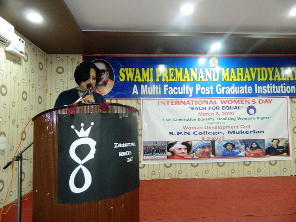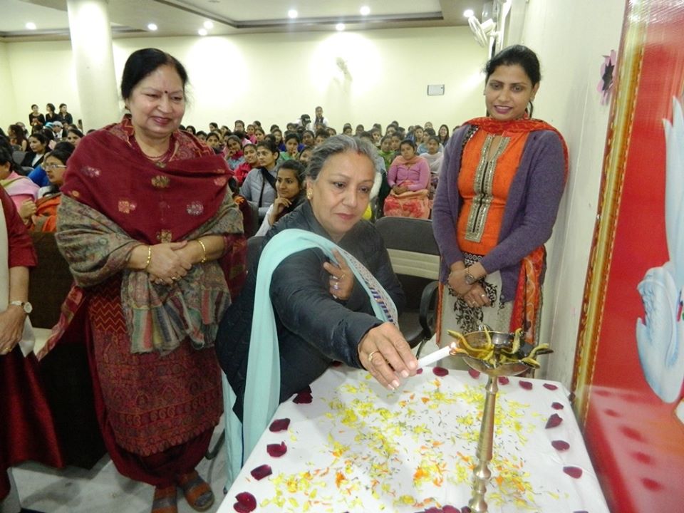 To honour womanhood, Swami Premanand Mahavidyalaya celebrated International Women’s day with a spirit of joy and ecstasy. The initiative was taken by the members of Women Development Cell of the college. Smt.Chanchal Narang was invited to grace the occasion as the chief guest. Dr. Raj Seth(Head, Department of Physics, DAV University, Jalandhar) was the guest of honour and Smt Minakshi Anand and Smt Varsha Swaraj were the special guests of the day. The resource person was Dr. Jasvir Rishi, (former Head, Department of Psychology, H.M.V College, Jalandhar) .