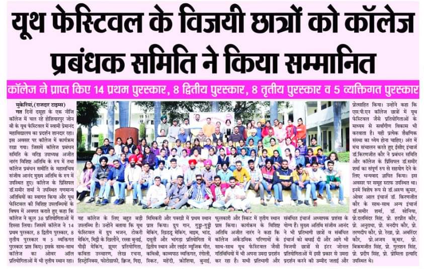 Apropos of achievements of students in the zonal youth festival, the SPN College Managing Committee, Mukerian honoured them for their exemplary accomplishments.