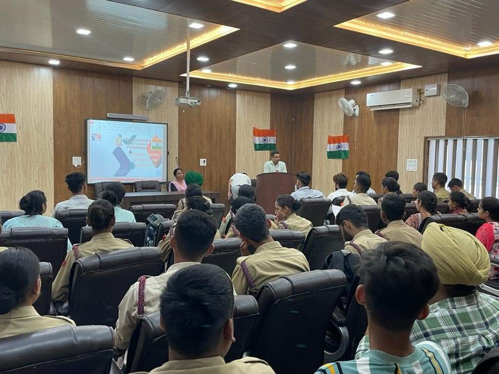 At the outset of the event, Asst. Prof. Anuradha (Incharge Red Ribbon and Youth Club) expounded over the theme of Amrit ka Mahotsav. Dr. Pushpinder Kumari (Incharge NSS) paid homage to the charismatic revolutionaries who made supreme sacrifices for the motherland. Dr. Sameer Mahajan (Incharge NSS) enlightened students about the duties towards their country.
