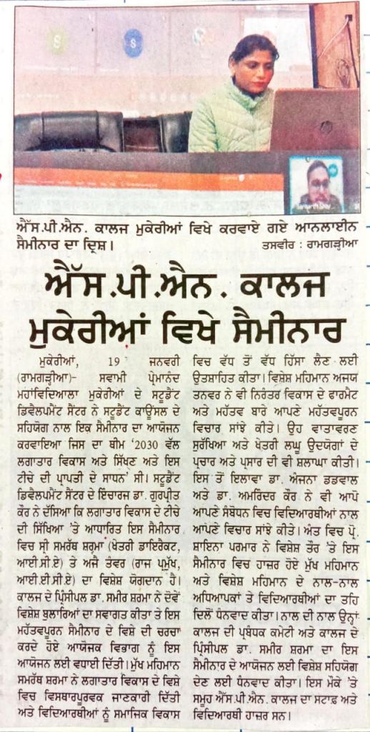 The interactive session of the seminar was moderated by Dr. Anjana Dadhwal and Dr. Amrinder Kaur . The session concluded by vote of thanks by Prof. Shaina Parmar. She thanked the speakers of the seminar for guiding the students. She also expresses gratitude towards SPN College Managing Committee and Principal Dr. Sameer Sharma for their support in conduct of the national seminar. The full enthusiastic participation by the students in the seminar was praiseworthy.