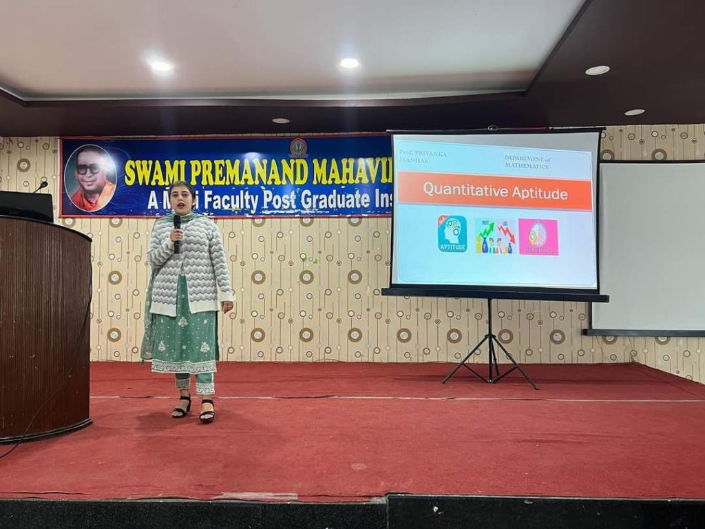 The Career Counselling and Placement Cell of Swami Premanand Mahavidyalaya, Mukerian, organized a specialized lecture on mathematics-related reasoning and aptitude for final year postgraduate and undergraduate students. Sh Pankaj Sareen, In- charge of the Career Counselling and Placement Cell, mentioned that under the guidance of Principal Dr. Sameer Sharma, a series of structured training programs are being conducted for students to develop personality skills alongside employment and education. In the third lecture of this structured training program, Mr Mohit Kumar and Ms Priyanka Manhas from the Department of Mathematics delivered special lectures on mathematical reasoning, verbal non-verbal reasoning, and aptitude. They provided students with simple techniques emphasizing quantitative aptitude to help them succeed in every exam. They mentioned that despite having adequate knowledge, students fail in exams due to lack of technique. Simple methods to solve mathematical problems are highly beneficial for students. Mr. Pankaj Sareen extended special thanks to the College Management Committee and College Principal Dr. Sameer Sharma. On this occasion, Dr. Jasminder Singh, Dr. Gurpreet Kaur, Ms. Mandeep, Dr. Chander Shekhar, Prof. Praveen Kumar, along with college students, were present.