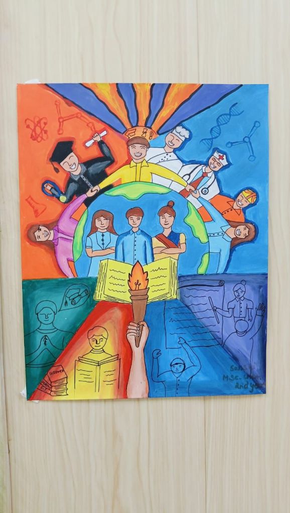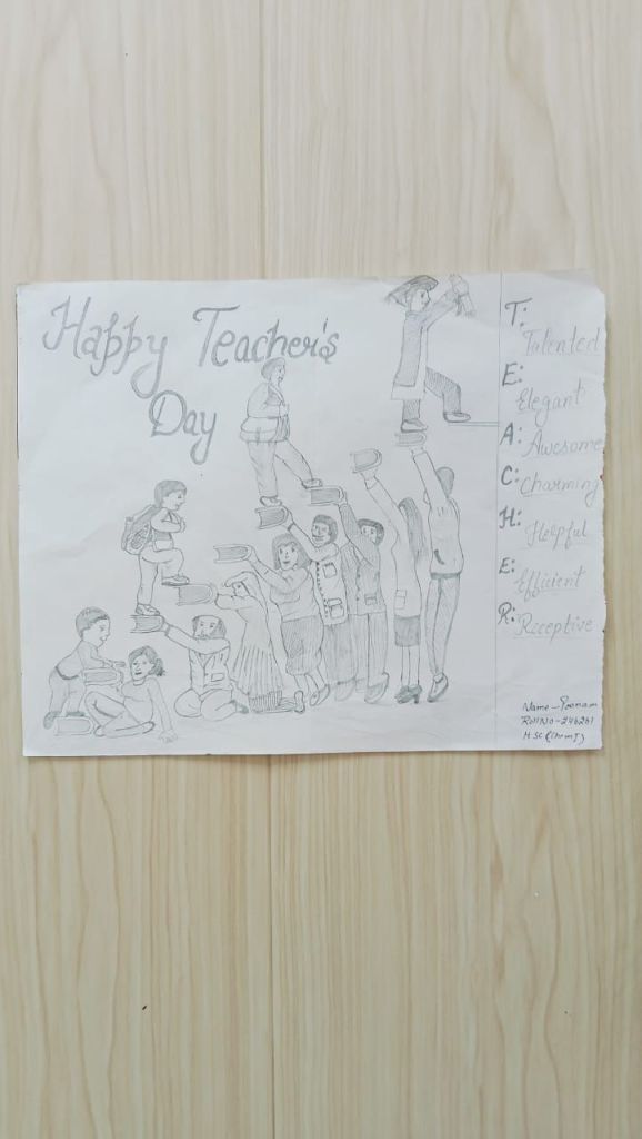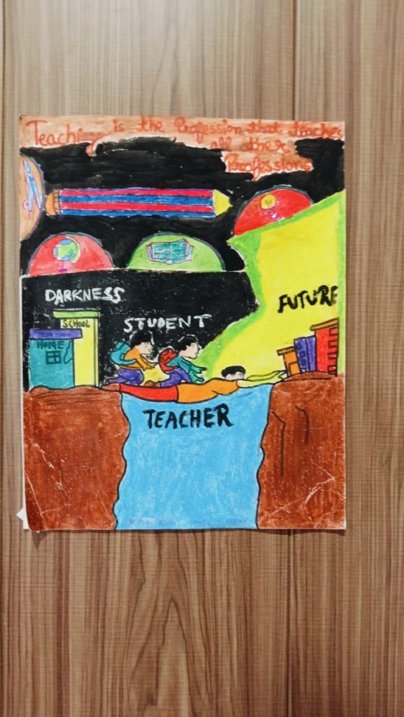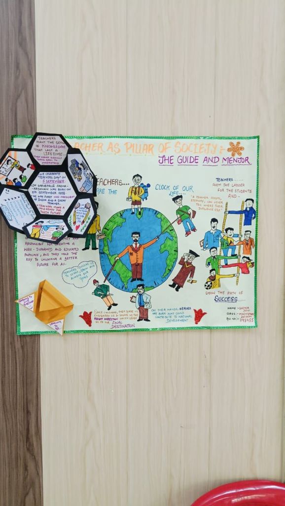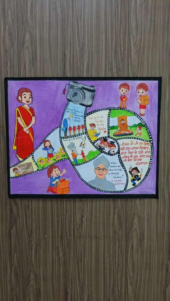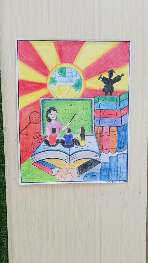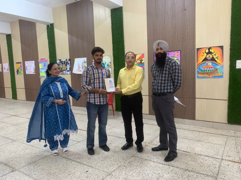 Approximately 100 students participated in the poster-making competition on the theme,’Teachers as pillars of society: The Guide and Mentor. ‘The competition was judged by Prof. Pankaj Sareen, Head, Post Graduate Department of Computer Science and Prof. Rupinder Jit Kaur, Assistant Prof., Post Graduate Department of Chemistry. In the competition Vishal Singh secured the first position, Simran and Sanika jointly won the second position, and Sapna Devi took the third place. The winners were felicitated with certificates . In conclusion Prof. Praveen Saini, Head Post Graduate Department of Chemistry, expressed her gratitude to the College Management Committee and Principal Dr. Sameer Sharma for their special support. On this occasion, the faculty of Department of Chemistry including Prof. Saransh, Prof. Harpreet Singh, and Prof. Mandeep Kaur, played an active role along with the students.