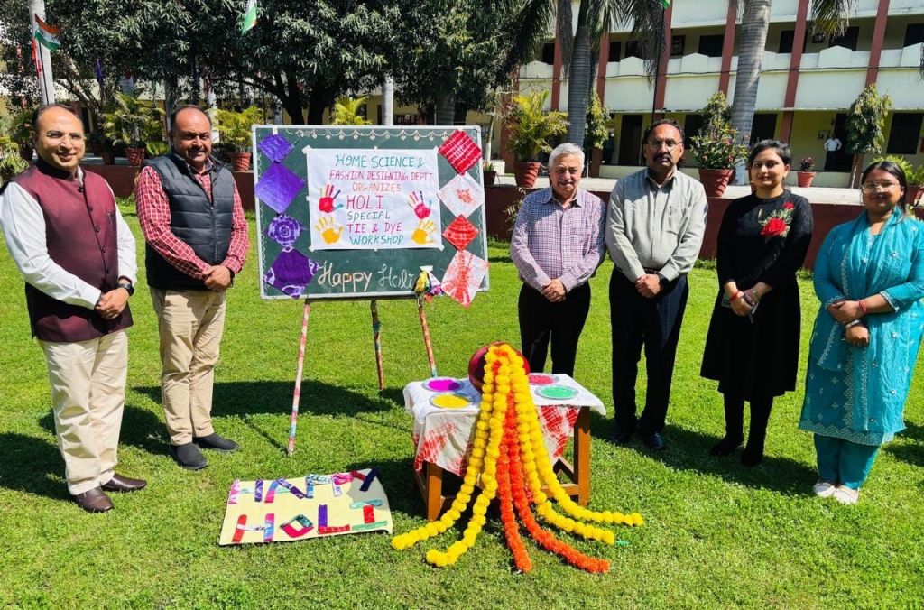 The Departments of Home Science and Fashion Designing at Swami Premanand Mahavidyalaya, Mukerian, organized a workshop on Tie and Dye techniques, specially themed for the Holi festival. The objective of this workshop was to provide students with practical knowledge of traditional fabric dyeing techniques and creative design development.