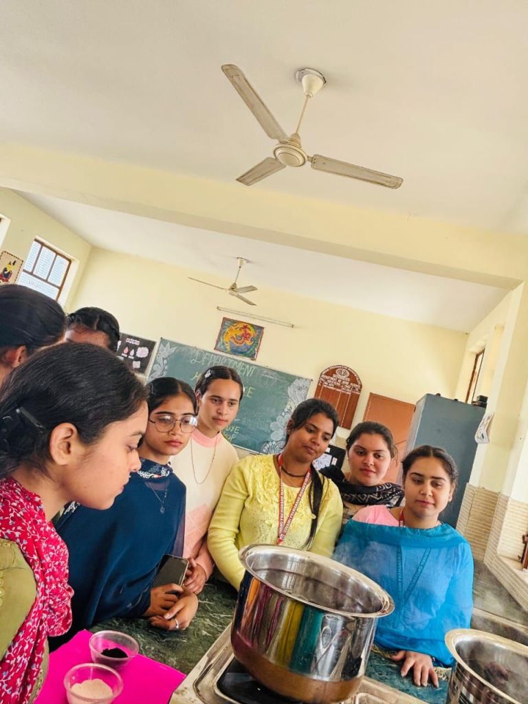 On this occasion, Prof. Monika Saini, on behalf of the Head of the Home Science Department, Prof. Harpreet Kaur, expressed gratitude to the college management committee and Principal Dr. Sameer Sharma for their continuous support. Laboratory Assistant Ms. Jyoti was also present, providing guidance to students throughout the workshop and appreciating their efforts.