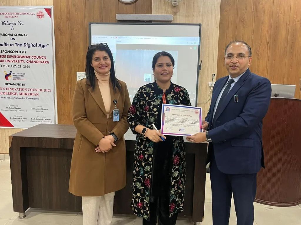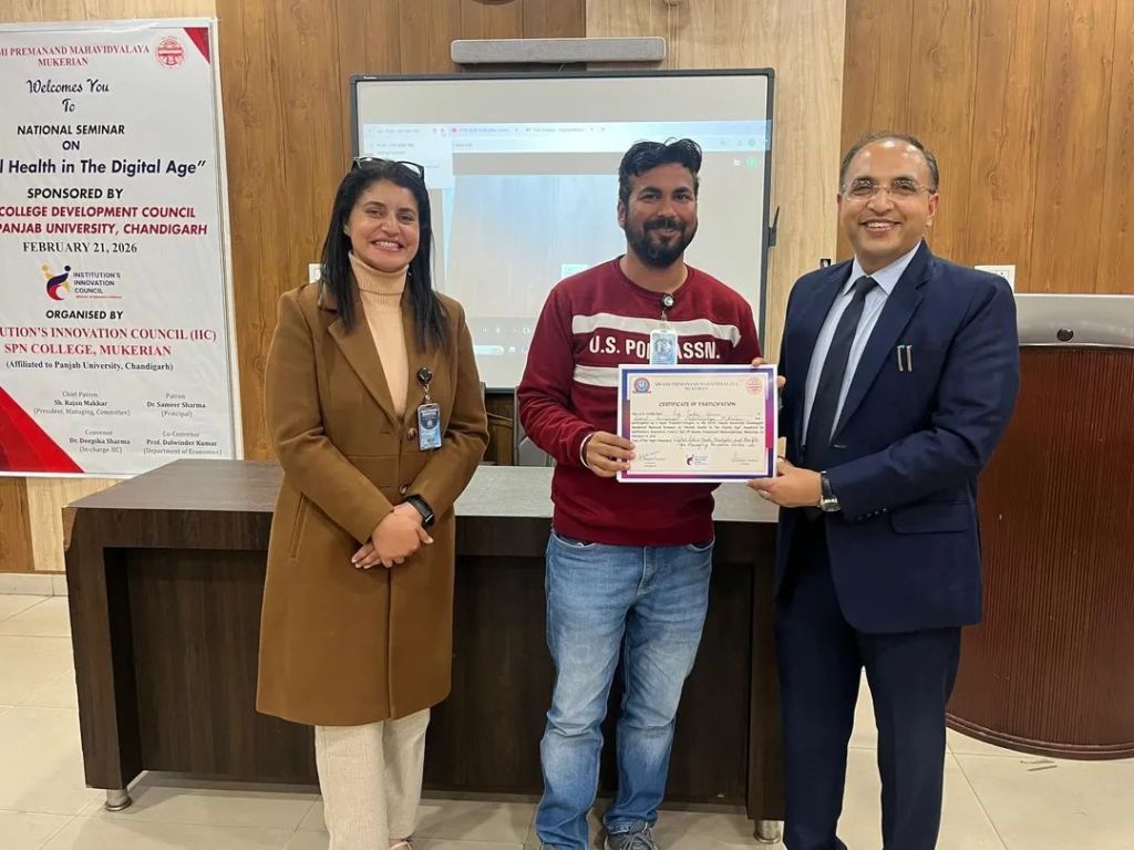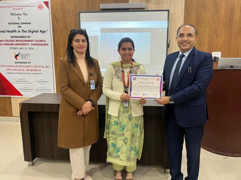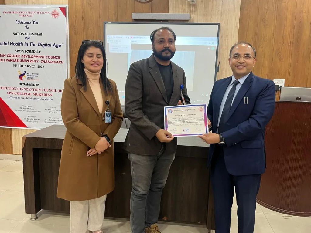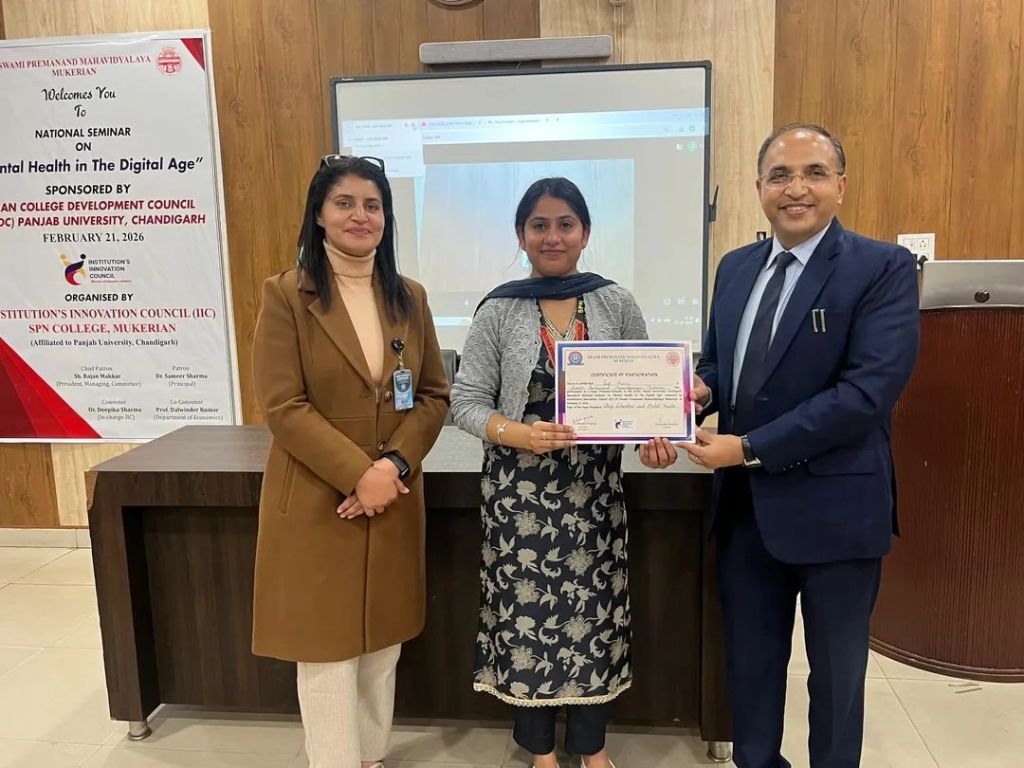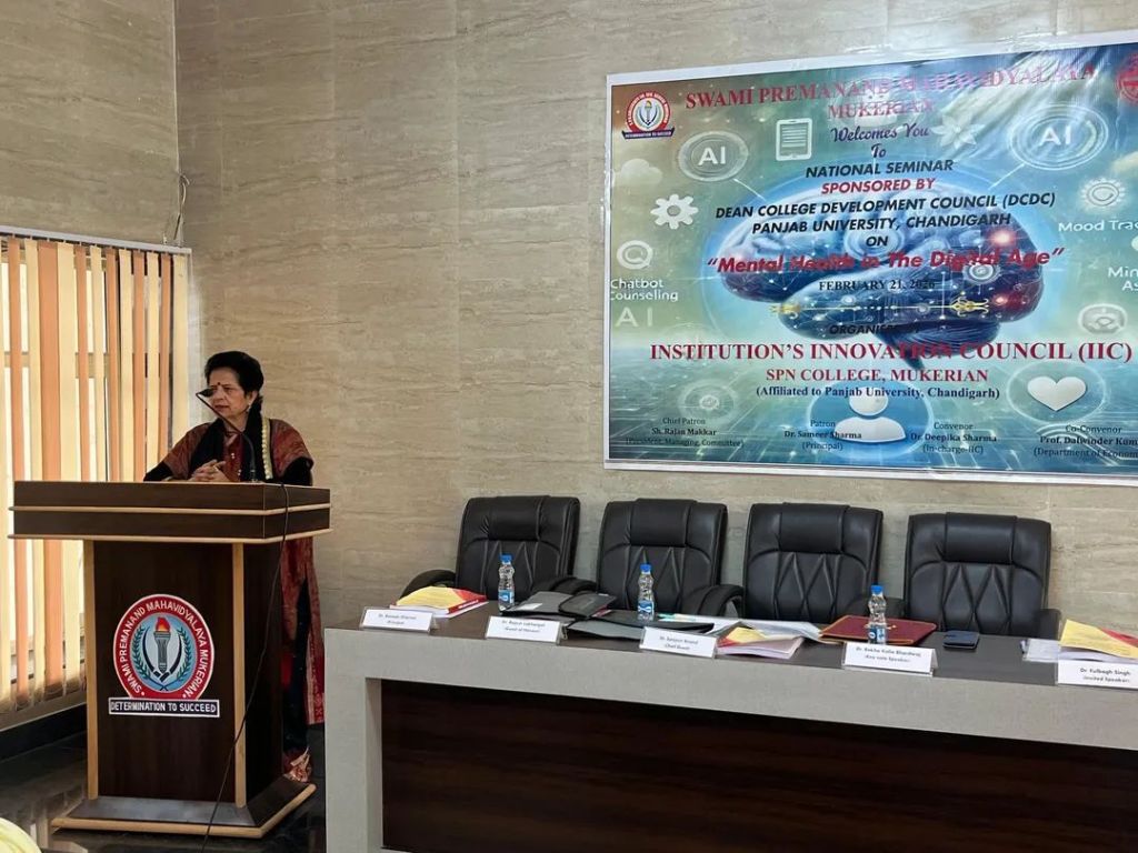 National Seminar on “Mental Health in the Digital Age”, sponsored by the College Development Council, Panjab University, was successfully organized by the Institution’s Innovation Cell of Swami Premanand Mahavidyalaya, Mukerian. The seminar aimed to address the growing concerns of mental health challenges in today’s fast-paced and technology-driven world.