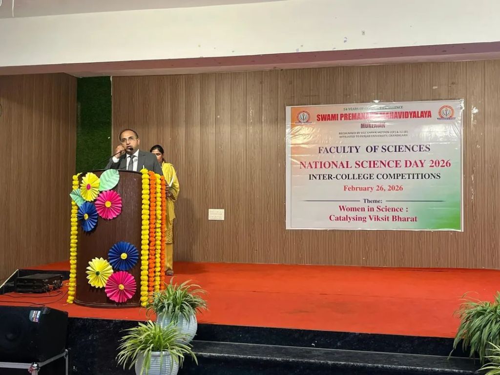 The Faculty of Sciences at Swami Premanand Mahavidyalaya celebrated National Science Day 2026 with great zeal and academic fervor under the theme “Women in Science: Catalysing Viksit Bharat.” The event was marked by a series of inter-college competitions aimed at promoting scientific temper, creativity, and innovation among students while commemorating the spirit of scientific inquiry.