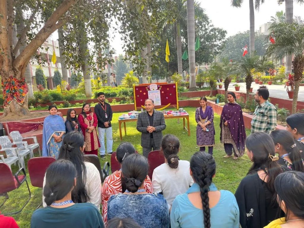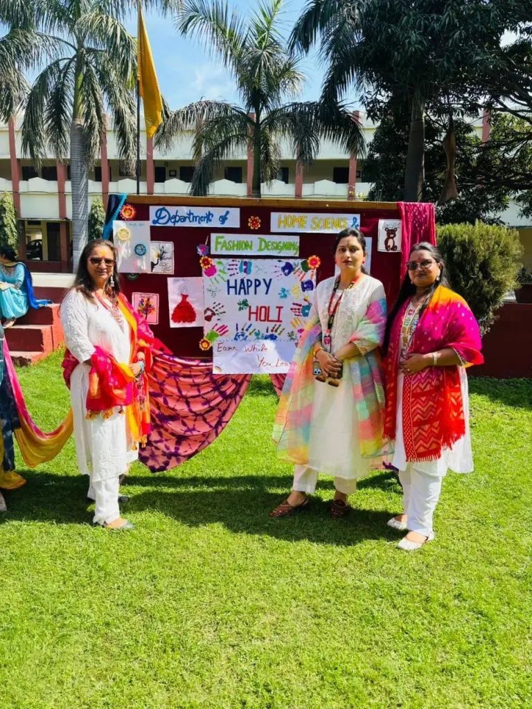 The programme was conducted under the able guidance of Principal Dr. Sameer Sharma, who motivated the students to enhance their creative abilities and practical skills. He appreciated the sincere efforts of the Department of Home Science and Fashion Designing for organizing such a meaningful activity, especially in connection with the festive spirit of Holi, thereby making the celebration more creative and culturally enriching. He also emphasized the importance of skill-based learning in higher education, stating that such workshops provide students with valuable practical exposure beyond classroom learning. He encouraged students to draw inspiration from such activities and develop a spirit of innovation, self-reliance, and entrepreneurship, reminding them that even small creative skills can grow into meaningful career opportunities when nurtured with dedication and passion.