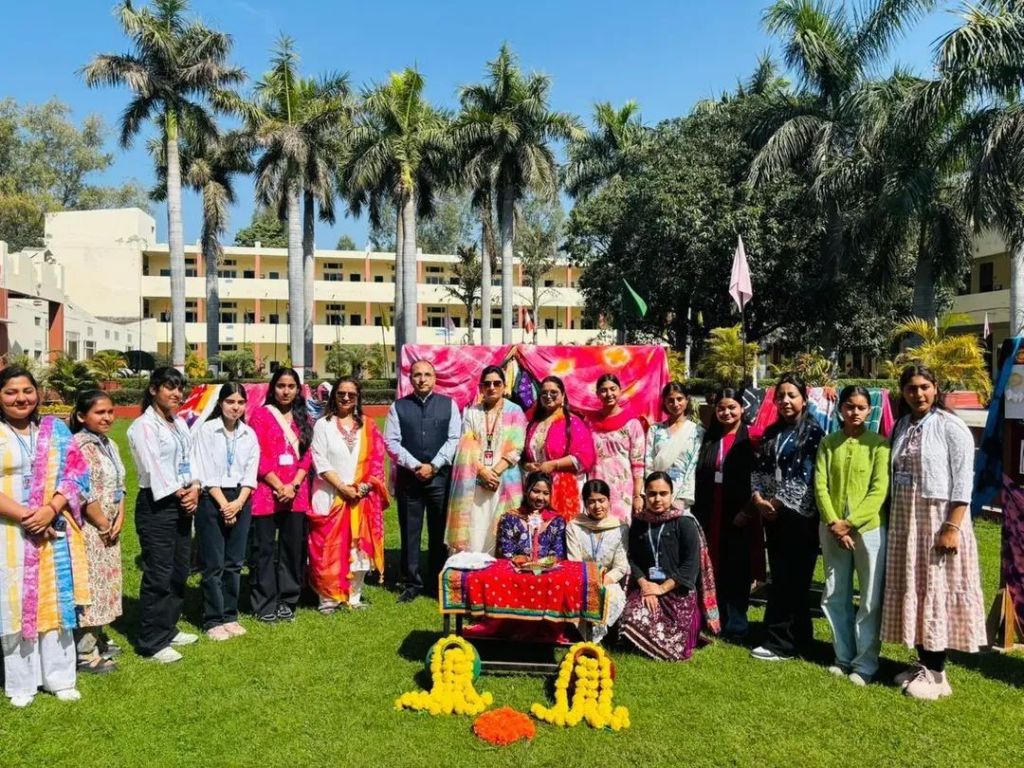 Prof. Harpreet Kaur, Head, Department of Home Science and Fashion Designing, introduced the concept of the event and elaborated on the objectives behind organizing such an innovative workshop. In her address, she highlighted that the art of tie and dye is a traditional textile technique deeply rooted in Indian culture, known for its vibrant patterns and artistic expression. She emphasized that reviving and promoting such traditional crafts among students is essential for preserving the country’s rich cultural heritage.