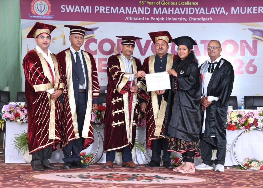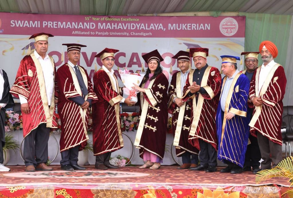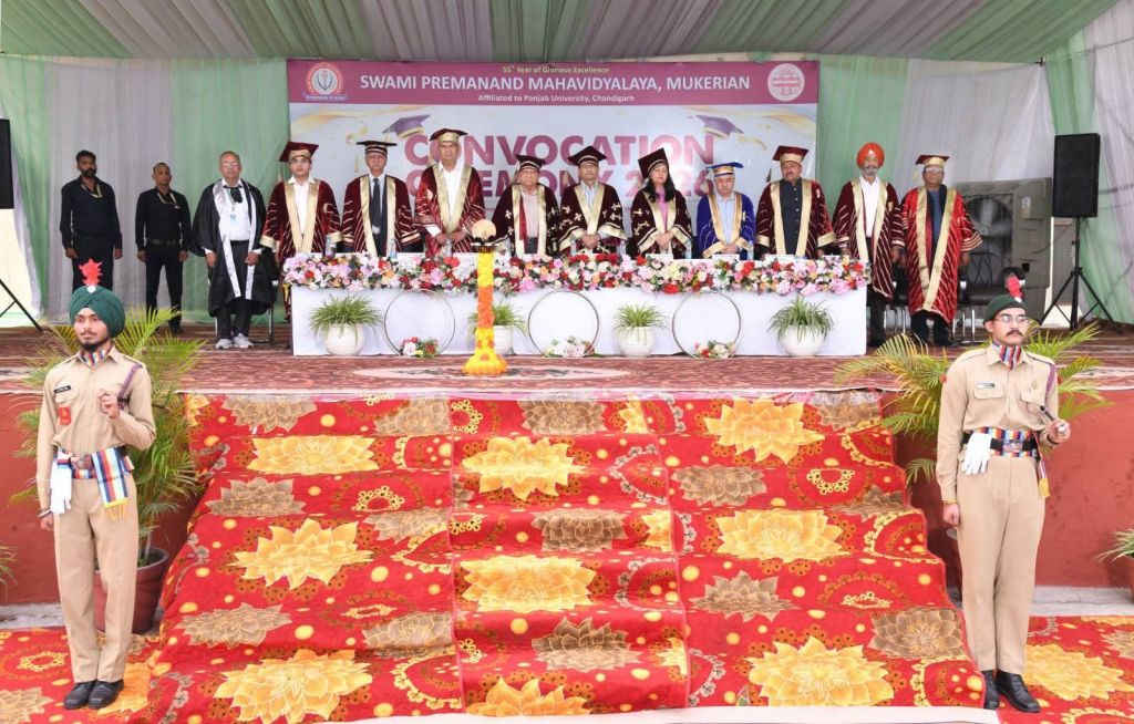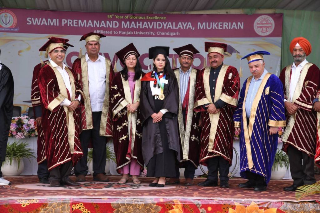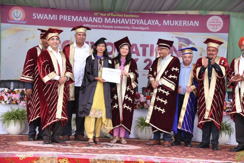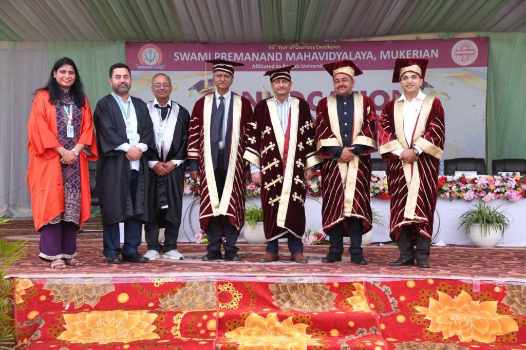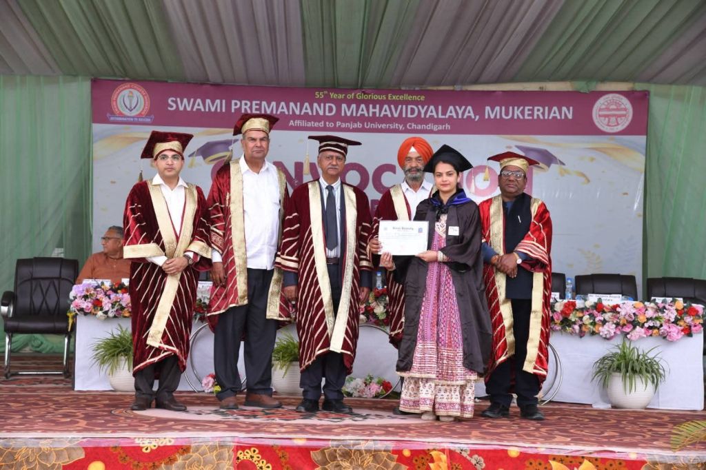 The Convocation Ceremony for the graduating students of the academic sessions 2022–23, 2023–24, and 2024–25 was organized with great enthusiasm, dignity, and grandeur at Swami Premanand Mahavidyalaya, Mukerian. The convocation marked a significant milestone in the academic journey of the students, celebrating their achievements in the esteemed presence of distinguished guests, college management, faculty members, parents, and students.