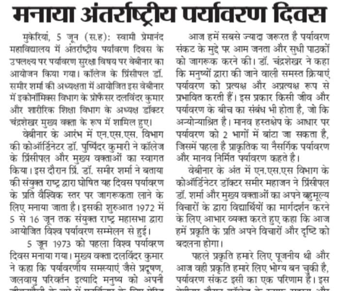 The NSS wing of the college organized a webinar on “Save Environment” with the objective of making the students aware about the environmental issues. At the outset of the event, NSS girls’ wing incharge, Dr. Pushpinder Kumari cordially welcomed the dignitaries and introduced the topic to the audience. […]