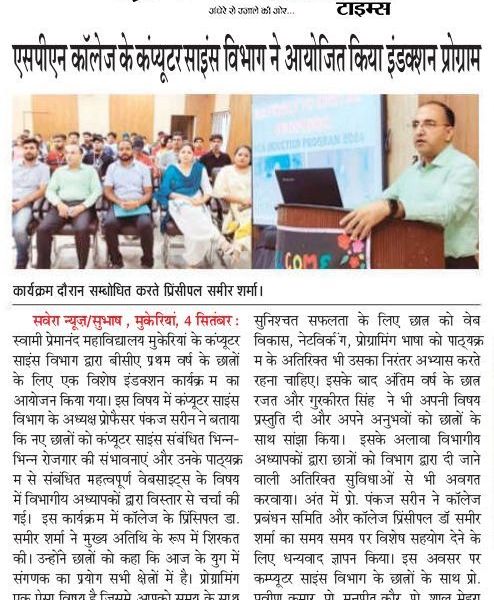 The Post Graduate Department of Computer Science at Swami Premanand Mahavidyalaya, Mukerian, organized an induction program for first-year BCA students. In this regard, the Prof. Pankaj Sareen, Head, Post Graduate Department of Computer Science, stated that the departmental teachers discussed various employment opportunities related to computer science and […]