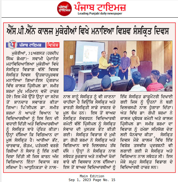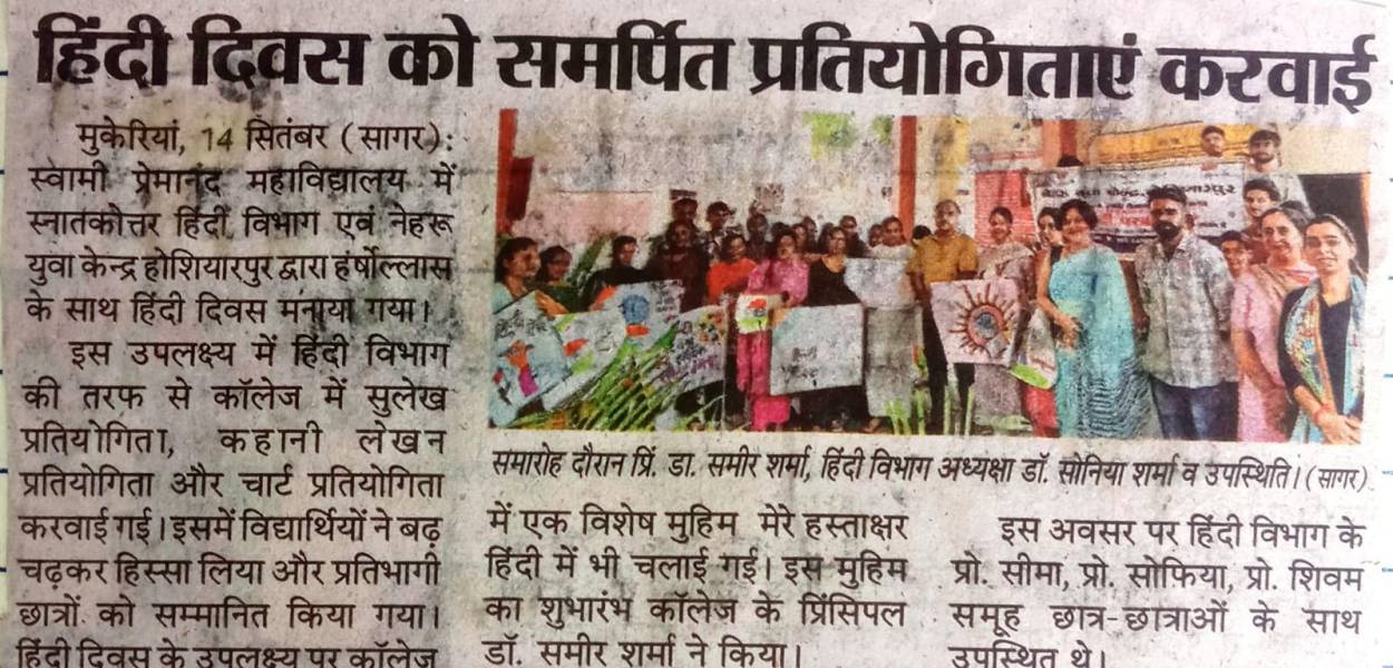 Swami Premanand Mahavidyalaya, Mukerian celebrated Hindi Day with great enthusiasm, organized by the Postgraduate Department of Hindi. On this occasion, Dr. Sonia Sharma, Head, Post Graduate Department of Hindi explained that September 14th is celebrated as Hindi Day throughout India. In commemoration of this, the Post Graduate Department […]