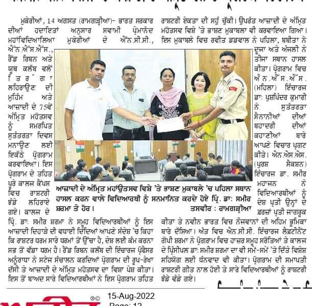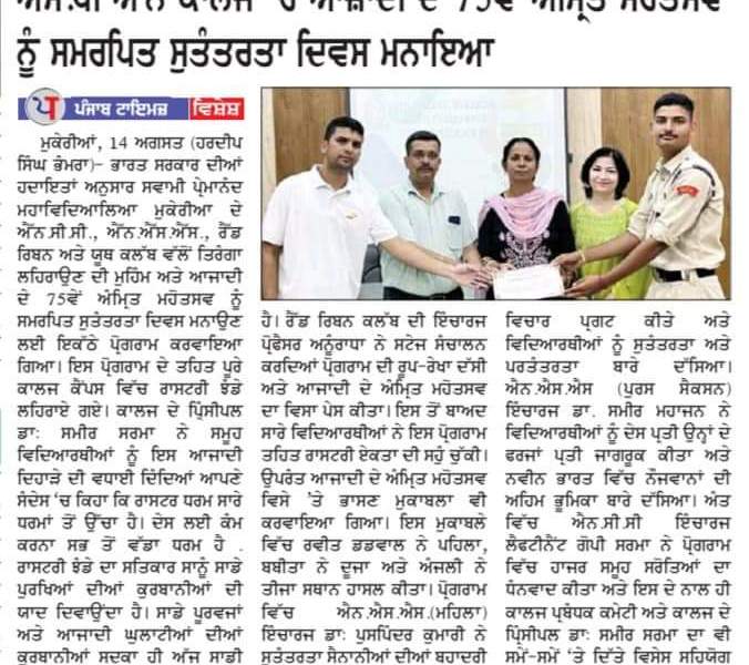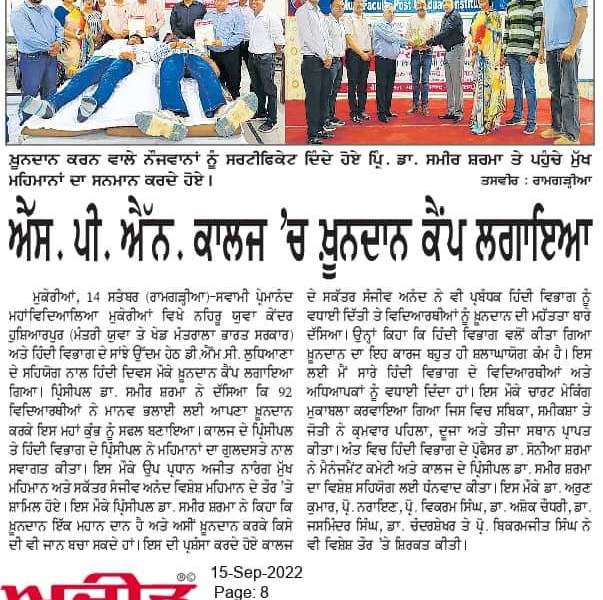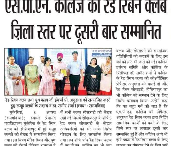 Political Science Department of SPN College, Mukerian celebrated International Democracy Day.While appreciating the efforts of Political Science Department, Principal Dr. Sameer Sharma promulgated that these types of events are the heart and soul of every educational institution,which leads to the all round development of the students.The purpose of […]