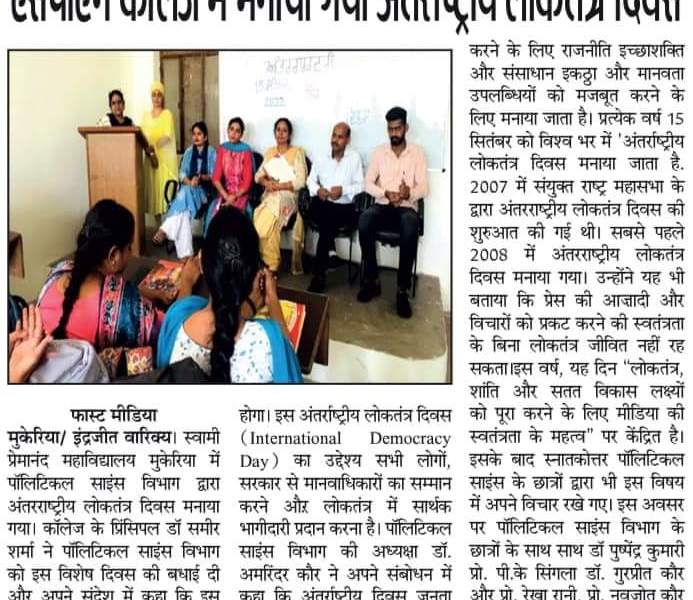 International Democracy Day celebrated at SPN College Mukerian.