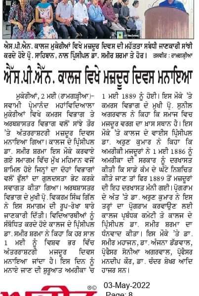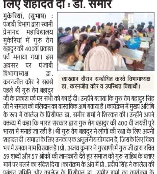 An awareness rally was organized by the NCC, NSS, Red Ribbon and Youth Club of Swami Premanand Mahavidyalaya Mukerian with the objective of making the society aware about plastic pollution. Giving information in this regard, the Principal Dr. Sameer Sharma said that the students of NCC, NSS and […]